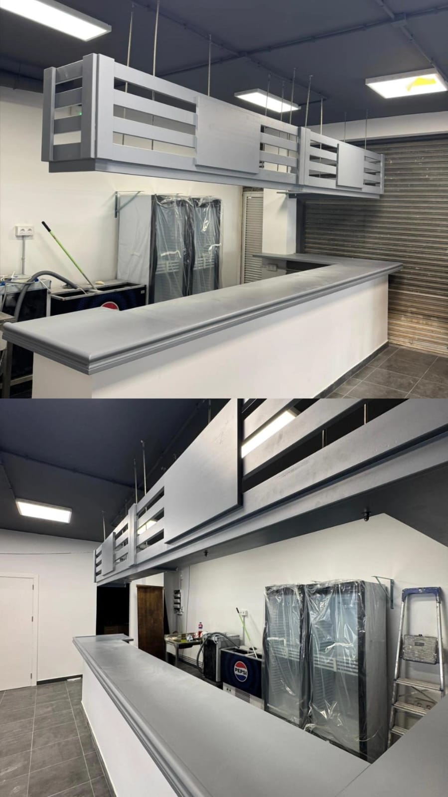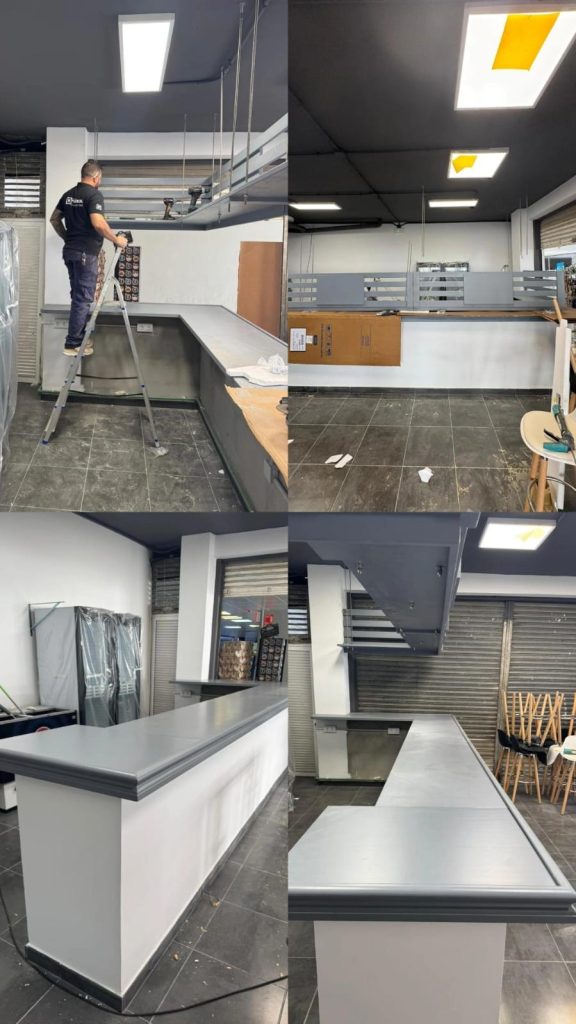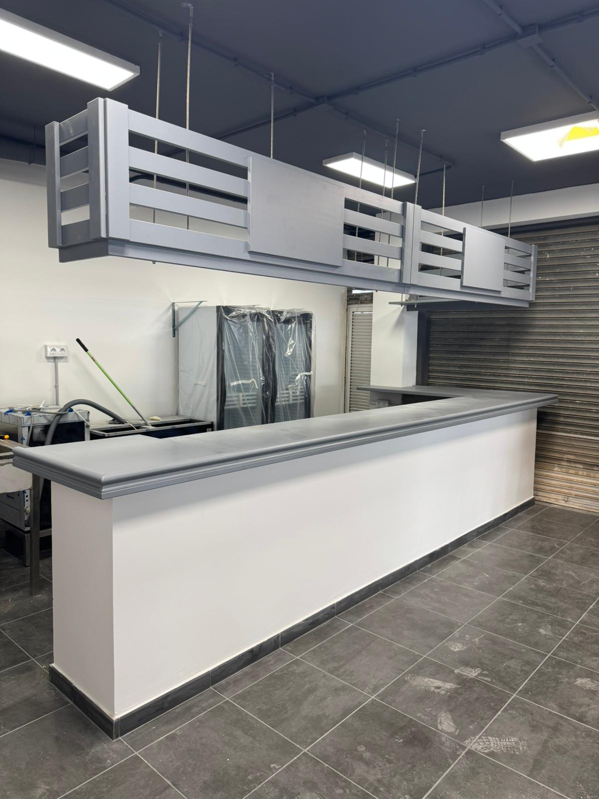Fabricación de mobiliario y 2 puertas a medidas para bar deportivo TEGANS BAR Barra, botellero y estantes a medida